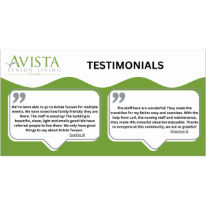 Whether you’re a staff member seeking inspiration or a prospective resident eager to hear from others, our Testimony Cards offer genuine stories that resonate with the heart. Explore the heartfelt endorsements and discover why so many trust Avista Senior Living for their senior living needs.